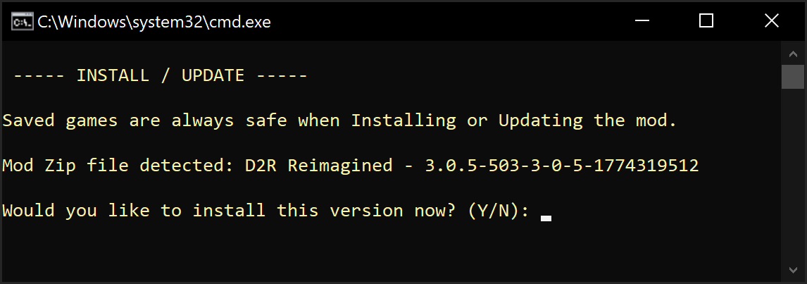 Install: Drop the mods folder from the zip into your root D2R directory and overwrite the 6 files when prompted. If you are not prompted then you dropped it in the wrong location. Either it nested into the mods folder, went into another folder it should not have, or you don't actually have the mod installed
